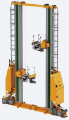 特点:对应单深位和双深位箱式货架,每个巷道设一个堆垛机,在天地轨间运行