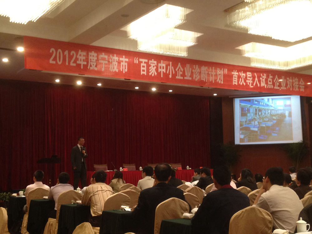我公司受宁波市经济和信息化委员会邀请,于4月25日参加2012年度宁波市"百家中小企业诊断计划"首次导入试点企业对接会.我公司是唯一一家受邀的宁波市外咨询公司.公司董事长陶学定在会上就管理咨询的导入发表了长达一个多小时的演讲.内容得到了主办方及出席企业家的高度肯定,反响强烈.通过本次演讲,使宁波企业家对管理咨询的导入有了更深入的了解,也使得越来越多的企业投身到内部管理体制的改革当中.