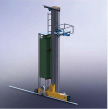 特点:对应单双深位托盘式货架,每个巷道设一个堆垛机,在天地轨间运行