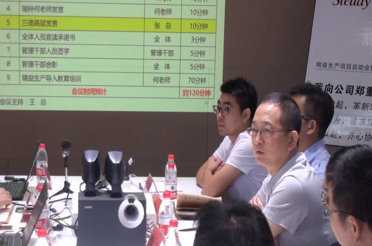 接着瑞铃企管董事长何老师结合自身管理和项目指导经验,从以下3点讲解精益:1.为什么三德要导入精益生产;2.精益是什么不是什么;3.自我做起,成为一个合格教练,优秀教练.