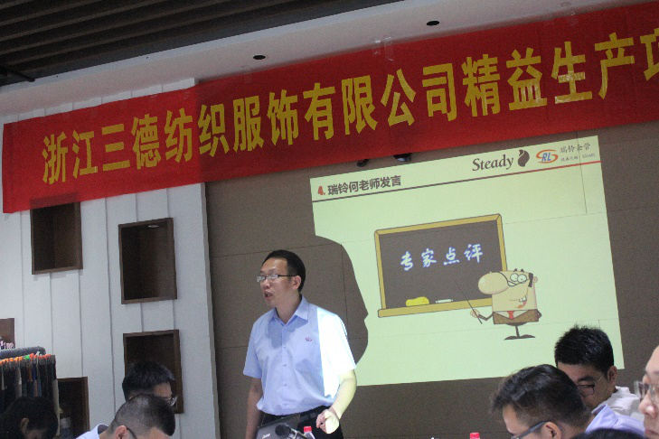 2017年9月2日,浙江三德纺织服饰有限公司精益生产项目启动大会隆重召开,会议上三德纺织董事长张总首先对瑞铃前期布局调查给予肯定.希望结合企业的发展战略,借着精益生产练好本领,摸索出属于三德自己的模式,将企业打造成世界毛针织第一.
