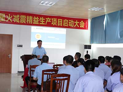 2019年5月16日, 江门星火减震器有限公司的精益生产项目调查报告会暨启动大会隆重举行。会议由星火...